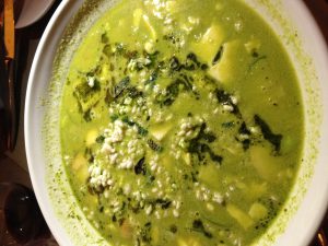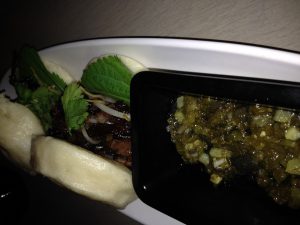 Each dish was executed impeccably and each had such unique flavor profiles. The Thai Chicken was crispy with a perfect balance of spice. The Lamb Buns were savory awesomeness and the varying textures gave the dish interest. The Spring Hot Pot didn't have the most creative eye appeal at first ghlance (a giant bowl of green soup), but it ended up being the group favorite that night. We went on to the BBQ Chicken, Korean Ribs, Papaya Cucumber Salad, Hamachi, Sweet Potatoes, and the Chinese Broccoli. The menu features an ever-changing "pancake". The selection this night was the Nueske Bacon Pancake. The focus is on the more savory and salty flavors versus the traditional "breakfast" flavors. Kim's take on sticky rice and traditional Asian vegetable dishes are interesting and inventive.
